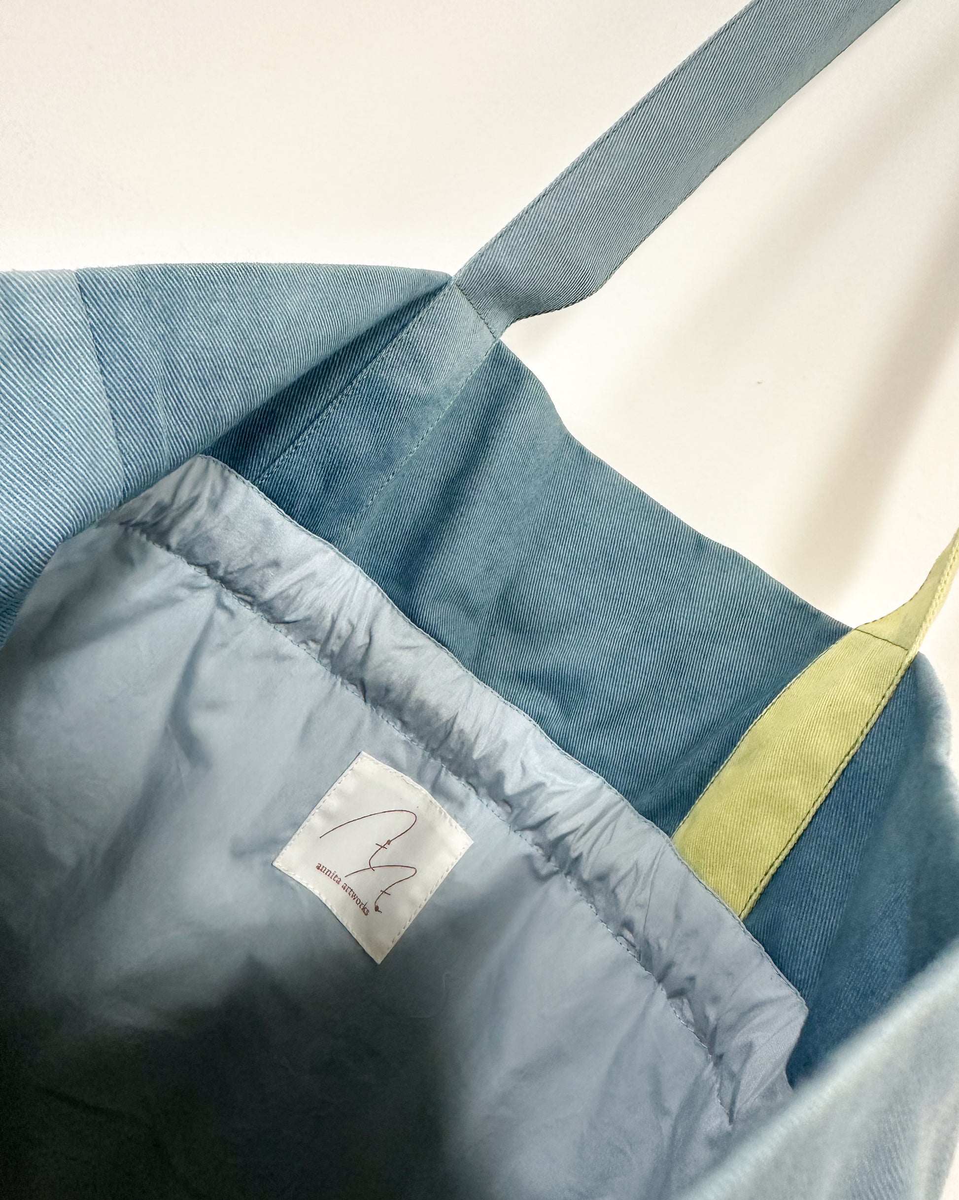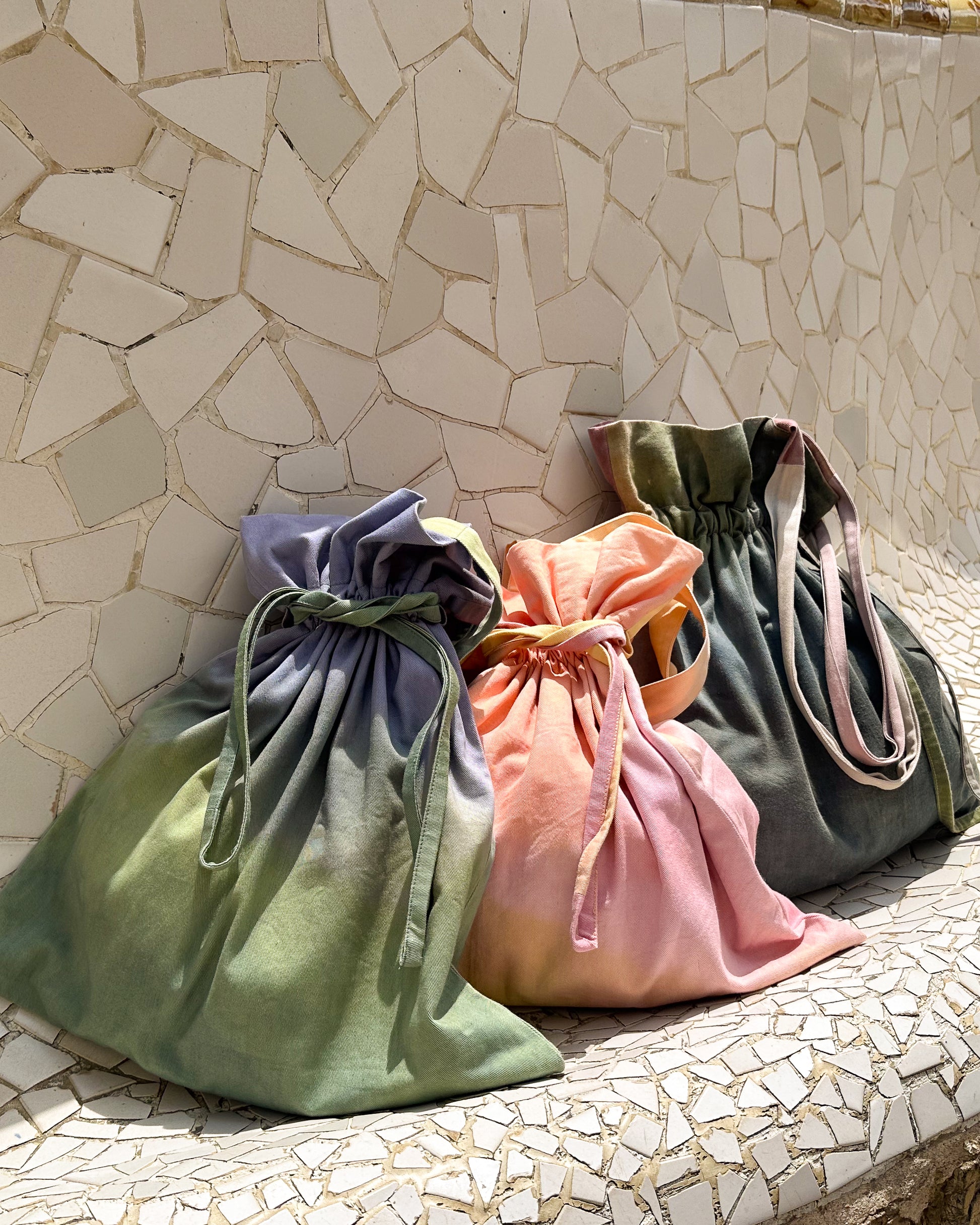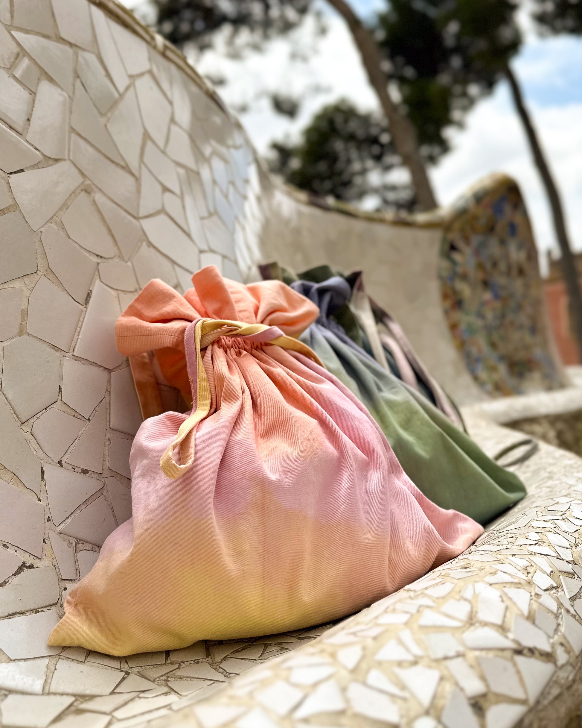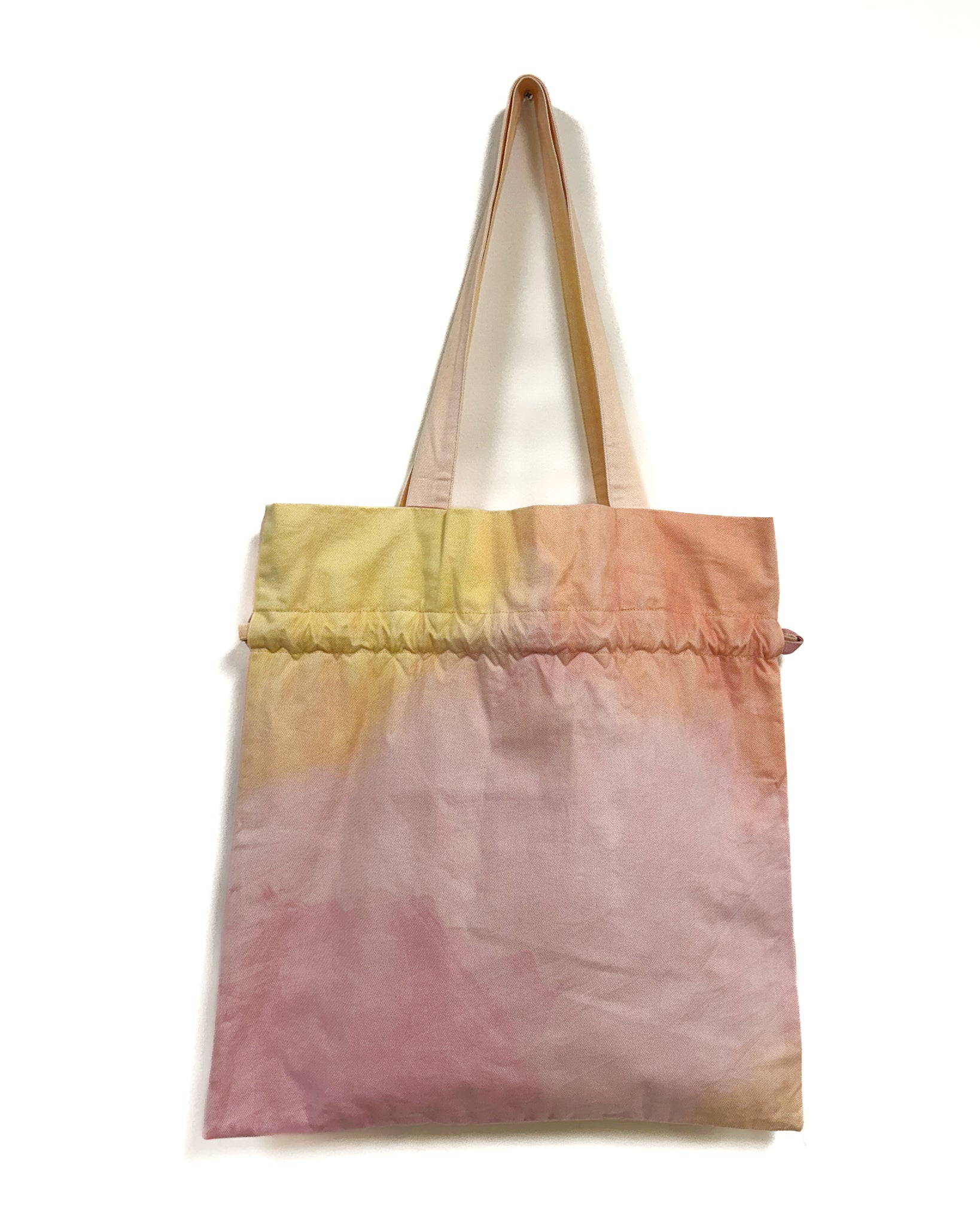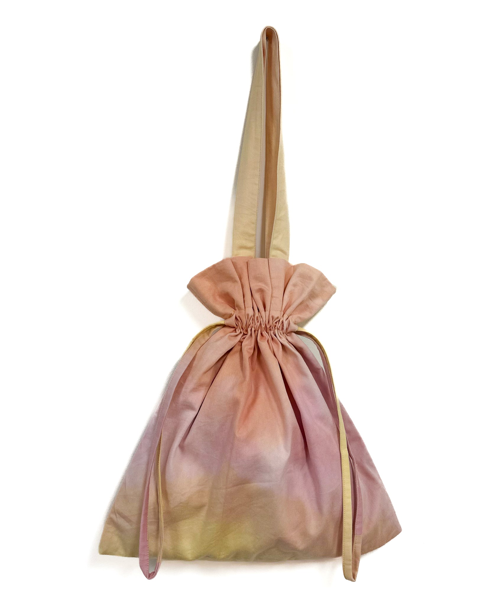 一つひとつ丁寧に、草木染めで布から染め上げて仕立てた巾着バッグ
