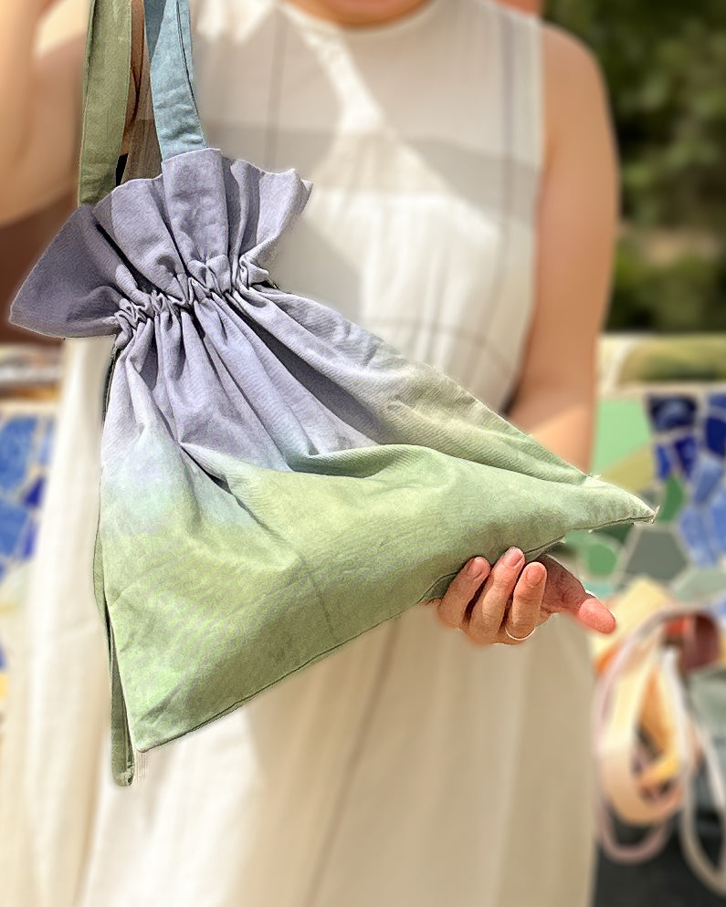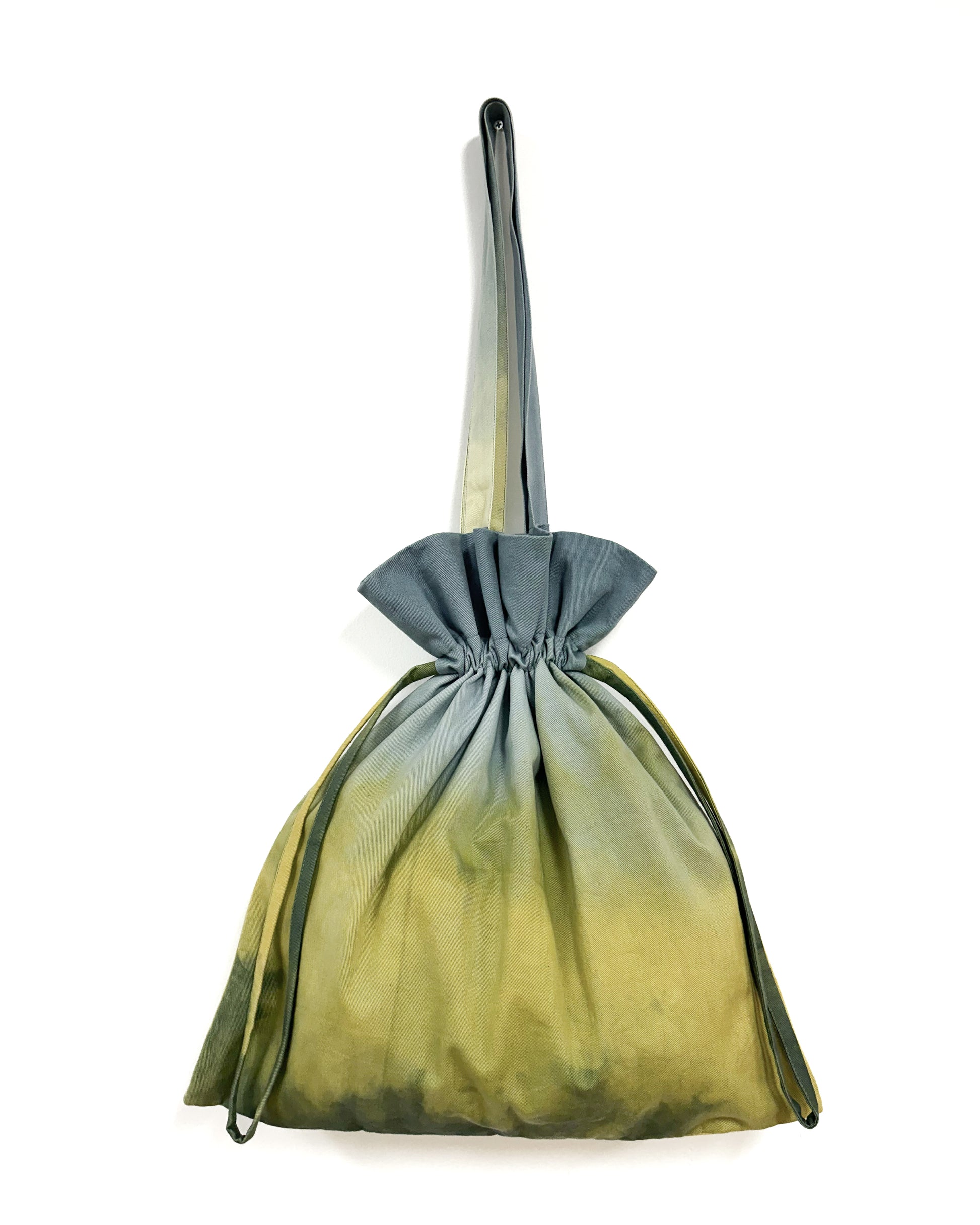 一つひとつ丁寧に、草木染めで布から染め上げて仕立てた巾着バッグ