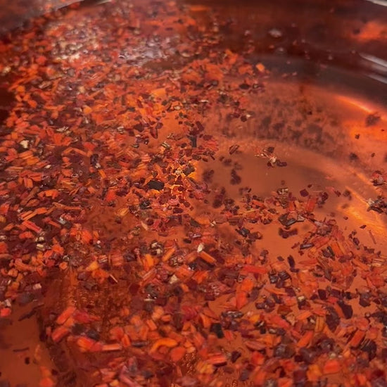 茜は山野に自生する多年生の草木で、その根が赤いことから「あかね」と名が付きました。茜には、日本茜、インド茜、西洋茜など、いくつかの種類がありますが、今回は特に発色の良い「インド茜」を使います。