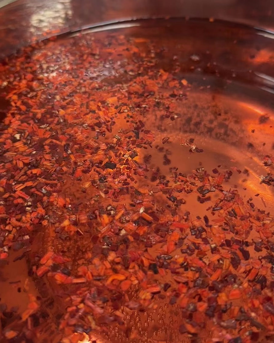 インド茜を使い、糸や布を夕焼けのような優しい赤色に染めます🌿